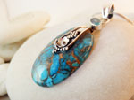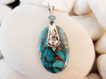 Colgante artesanal "Navajo" de plata, Topacio azul y Turquesa nativa en filon de cobre. Arizona, Estados Unidos.