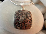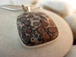 Colgante artesanal de plata y agata leopardo de Ojo Laguna, Chihuahua, Mexico.