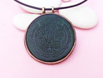 Delicada caligrafía hecha a mano sobre ágata verde y engastada en plata.